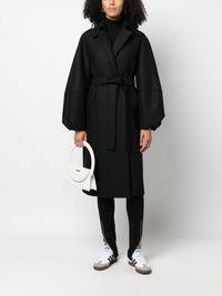 tied-waist virgin-wool coat Highlights - Black - Virgin wool - Tied waist - Central rear vent - Classic collar - Off-centre front fastening - Balloon sleeves - Two side inset pockets - Straight hem Made in Italy Composition Virgin Wool 100% SIZE & FIT Model measurements Height 5 ft 10 in(1.78 m) Bust/Chest 33.07 in(84 cm) Hips 36.61 in(93 cm) Waist 24.8 in(63 cm) FittingInformation Designed to be unstructured, offering a loose fit throughout The tie fastening gives an adaptable and personalised fit Made from a midweight non-stretch fabric This piece fits true to size – take your usual size Washing instructions Dry Clean Only