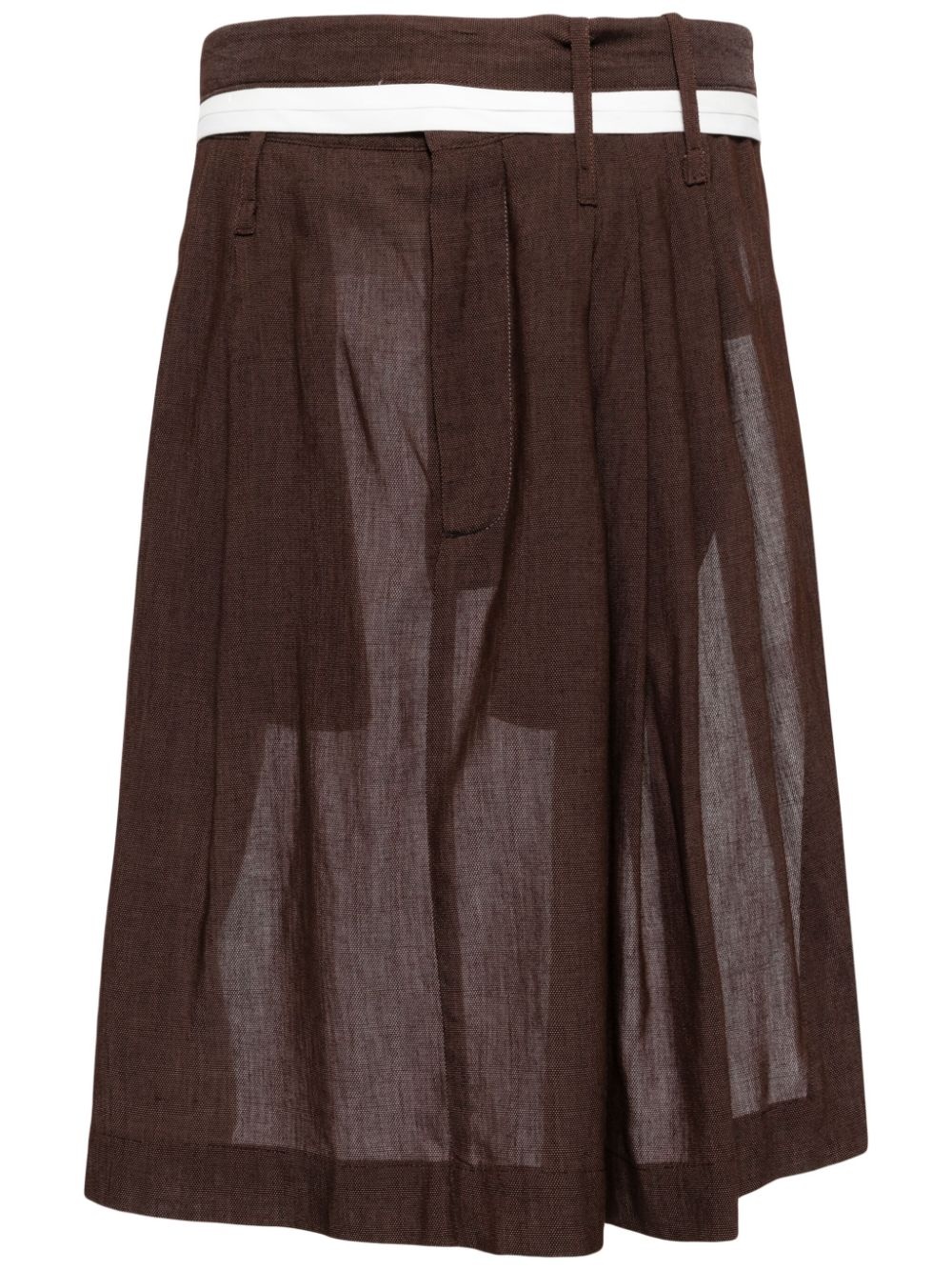 pleated belted skirt Highlights - Brown - Wool blend - Pleat detailing - Belted waist - Two side inset pockets - Open back - Straight hem Made in Italy Composition Viscose 78%, Wool 22% SIZE & FIT Model measurements Height 6 ft 2 in(1.87 m) Bust/Chest 34.25 in(87 cm) Hips 36.22 in(92 cm) Waist 29.52 in(75 cm) FittingInformation Designed to finish below the knee Made from a lightweight non-stretch fabric This piece fits true to size – take your usual size