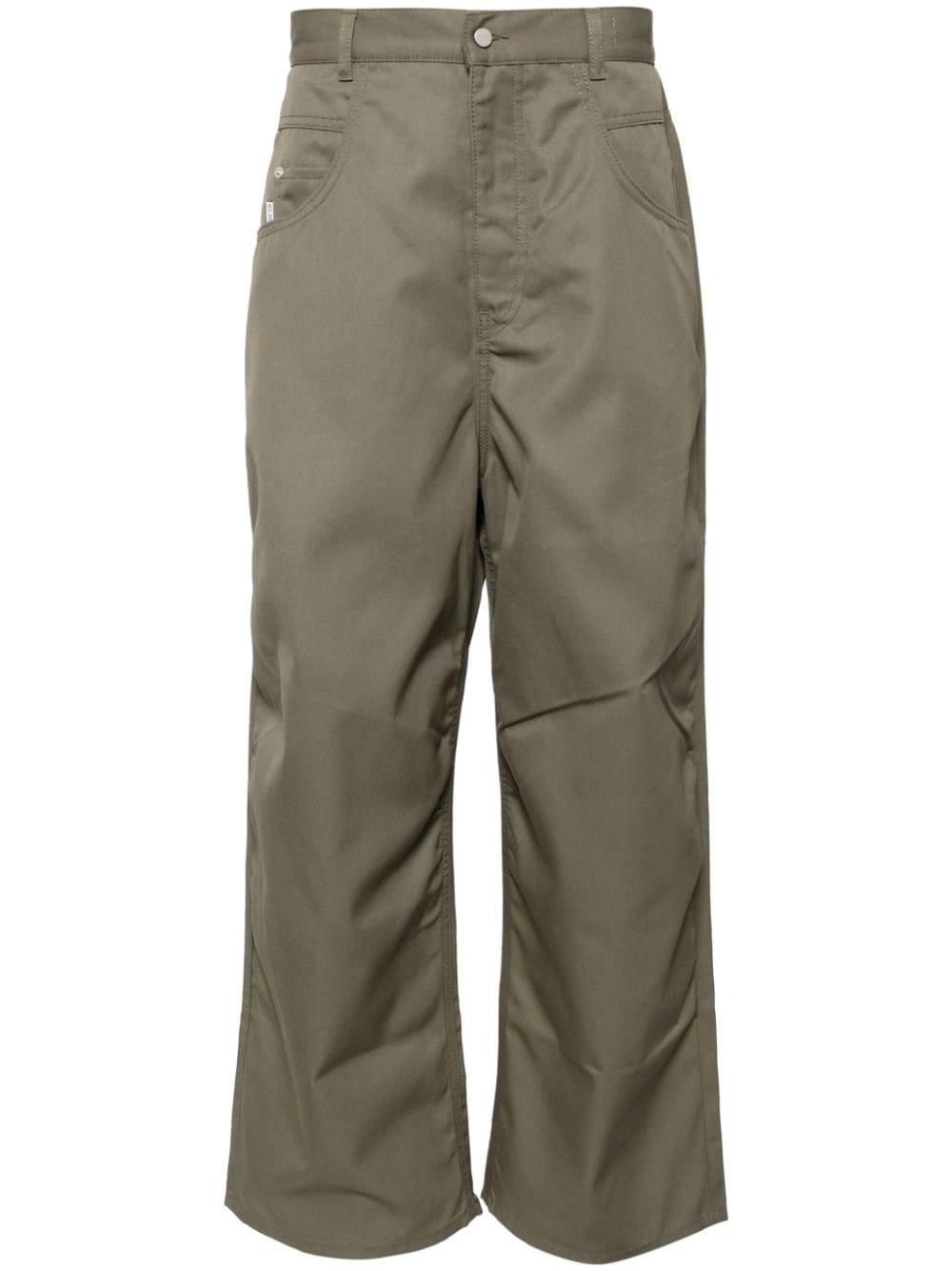 wide-leg trousers Highlights - Khaki - Logo patch to the rear - Silver-tone hardware - Belt loops - Concealed fly and button fastening - Classic five pockets - Wide leg Made in Italy Composition Polyester 65%, Cotton 35% SIZE & FIT Model measurements Height 6 ft 2 in(1.87 m) Bust/Chest 33.07 in(84 cm) Hips 35.43 in(90 cm) Waist 26.77 in(68 cm)