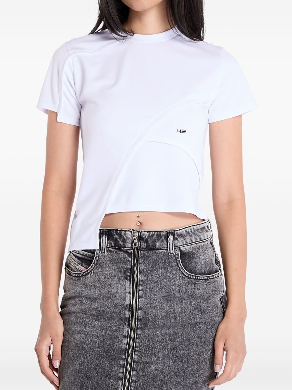 cropped T-shirt Highlights - White - Panelled design - Logo print at the chest - Asymmetric hem Imported Composition Cotton 85%, Spandex/Elastane 15% Washing instructions Machine Wash