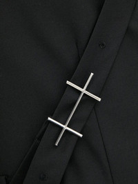 cross-detail blazer Highlights - Black - Cross-shaped silver-tone embellishment - Long sleeves - Open neckline - Welt pockets Imported Composition Outer: Polyester 55%, Wool 45% Lining: Recycled Polyester 100% Washing instructions Read Manufacturer Guidelines
