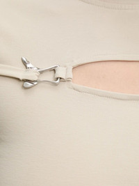 keyhole-detail clasp T-shirt Highlights - Beige - Keyhole detail - Short sleeves - Mock neck Imported Composition Cotton 84%, Elastane 16% Washing instructions Read Manufacturer Guidelines