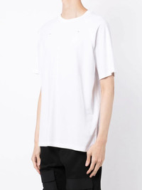 logo-print detail T-shirt cloud white cotton logo print to the front round neck short sleeves straight hem Imported Composition Cotton 100% SIZE & FIT Model measurements Height 6 ft 1 in(1.86 m) Bust/Chest 34.64 in(88 cm) Hips 36.22 in(92 cm) Waist 27.16 in(69 cm) FittingInformation This piece fits true to size. We recommend you get your regular size Cut for a loose fit Made with a mid-weight fabric Washing instructions Machine Wash