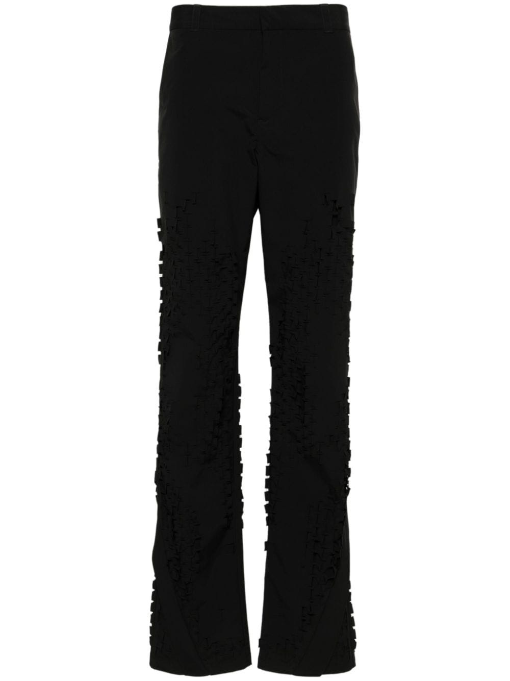 Morphogens mid-rise straight-leg trousers Highlights - Black - Lasercut pattern - Mid-rise - Belt loops - Concealed front fastening - Two diagonal pockets to the sides - Two rear flap pockets - Straight leg - Ankle zips - lasercut pattern Imported Composition Lining: Polyester 100% Outer: Polyester 100% SIZE & FIT Model measurements Height 6 ft 2 in(1.87 m) Bust/Chest 37.79 in(96 cm) Hips 37.79 in(96 cm) Waist 30.31 in(77 cm) FittingInformation Designed for a straight-leg, allowing for an unrestricted and comfortable fit over the leg The zipped hems allow you to adjust the fit throughout the calves and ankles Made from a midweight non-stretch fabric This piece fits true to size – take your usual size Washing instructions Machine Wash