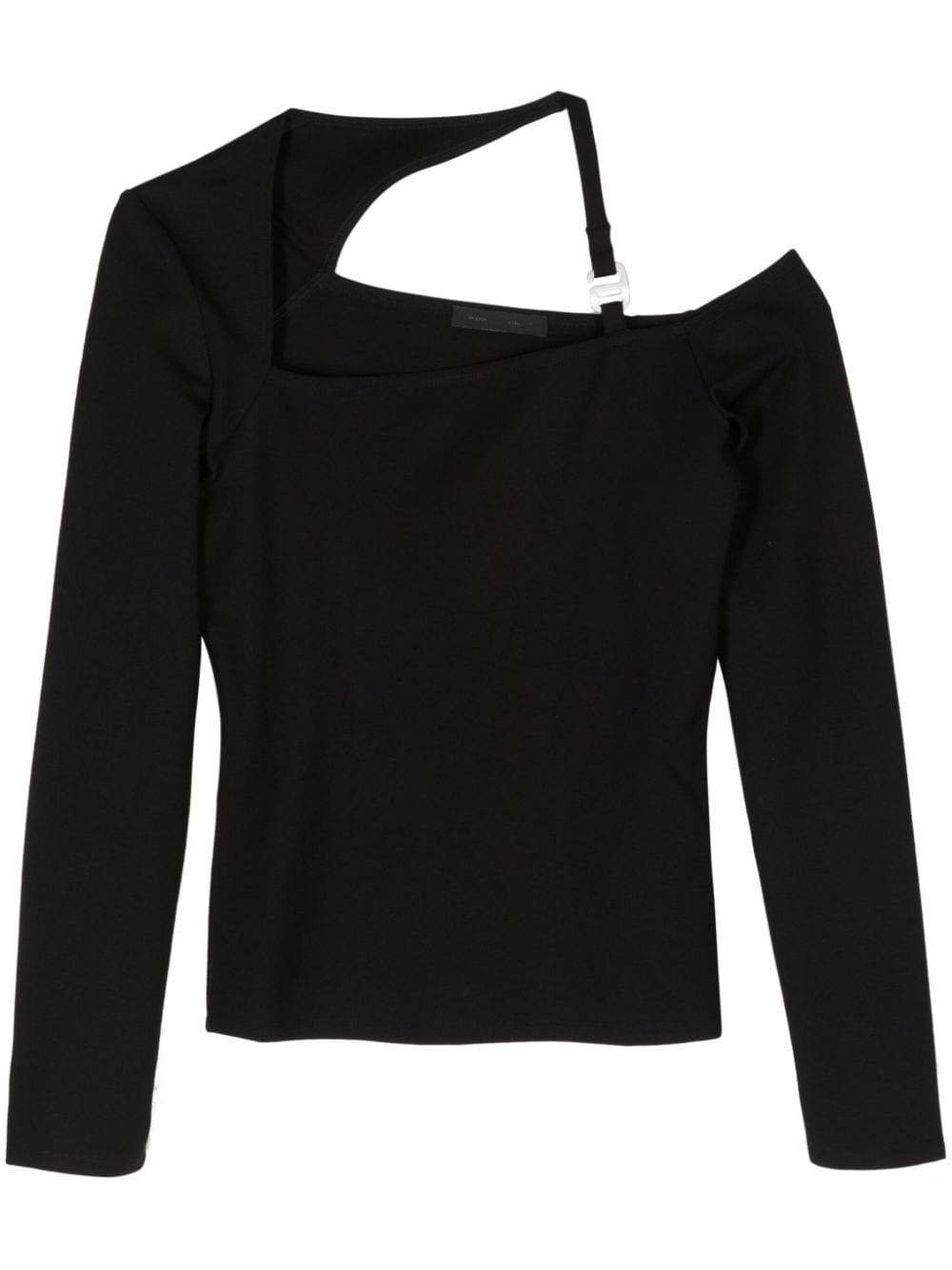 open-shoulder long-sleeve top Highlights - Black - Stretch-design - Square neck - Strap hook and eye fastening - One-shoulder - Open-shoulder sleeve - Long sleeves - Straight hem Imported Composition Polyester 73%, Elastane 27%