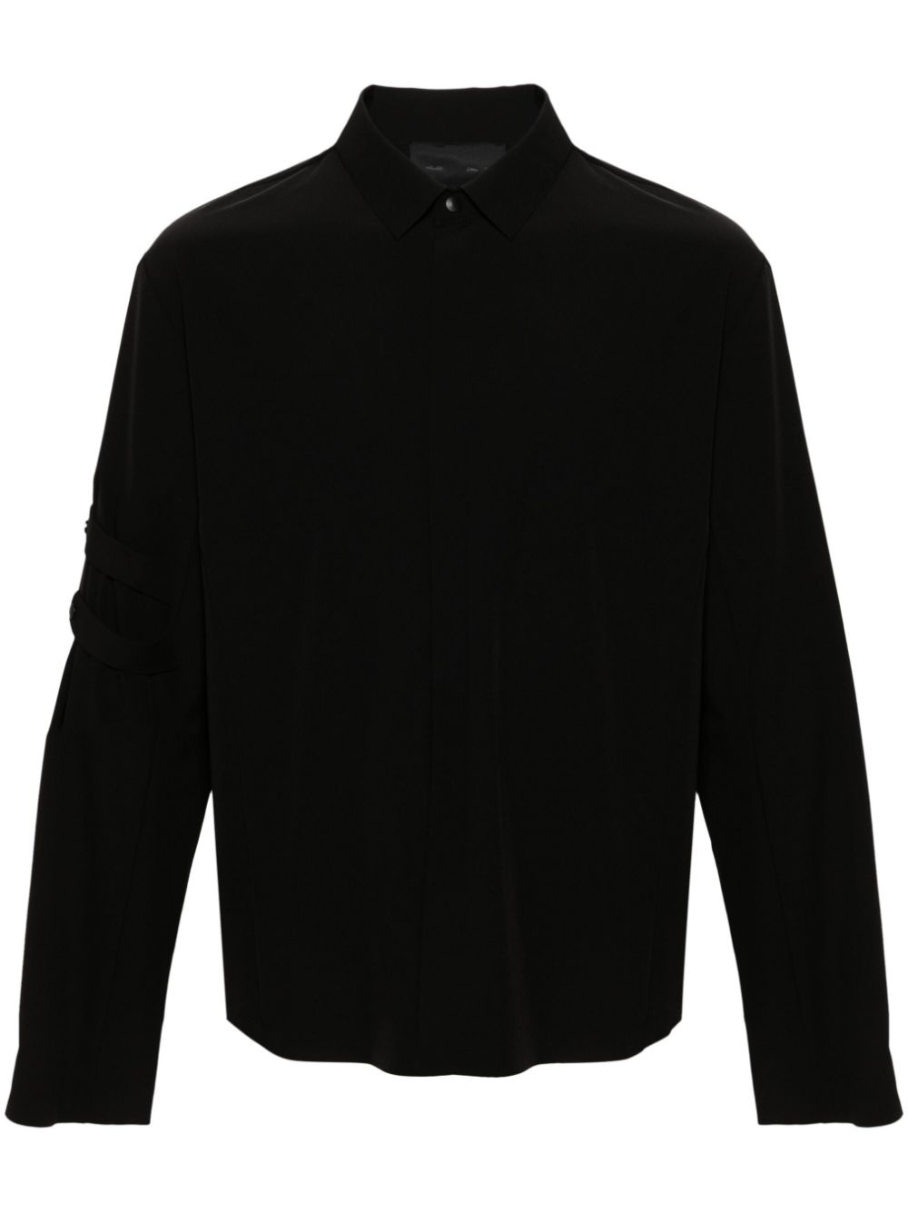 press-stud crepe shirt Highlights - Black - Cream texture - Classic collar - Concealed front press-stud fastening - Long sleeves - Press-stud fastening cuffs - Press-stud detailing at the sleeve - Curved hem Imported Composition Nylon 87%, Spandex/Elastane 13% SIZE & FIT Model measurements Height 6 ft 1 in(1.85 m) Bust/Chest 35.43 in(90 cm) Hips 37.79 in(96 cm) Waist 29.92 in(76 cm) FittingInformation Designed for a regular fit, allowing for a comfortably loose fit throughout the body Made from a midweight stretch fabric, this piece offers elasticity and flexibility when worn This piece fits true to size – take your usual size