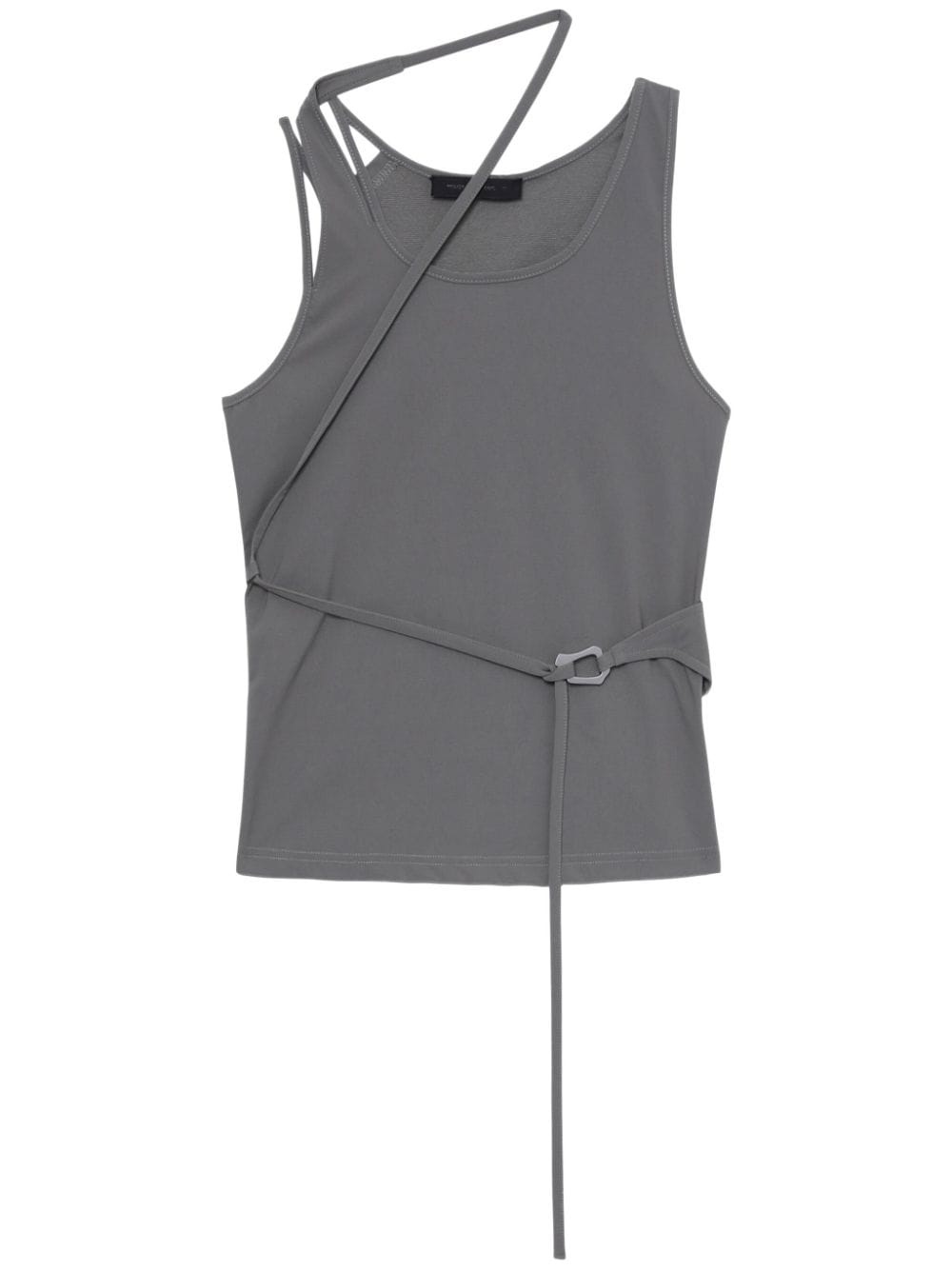 strap-detail draped top Highlights - Sage green - Stretch-design - Round neck - Strap detailing - Self-tie fastening - Sleeveless - Straight hem Imported Composition Nylon 90%, Spandex/Elastane 10%