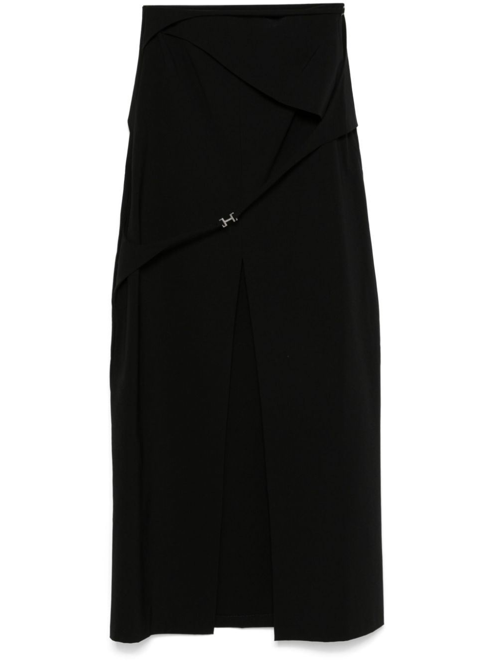 strap-detail maxi skirt Highlights - Black - Concealed side zip fastening - Layered details - Rear slit Imported Composition Nylon 90%, Elastane 10% SIZE & FIT FittingInformation This maxi-length skirt is intended to be worn high on the waist Made from a lightweight stretch fabric, this piece offers elasticity and flexibility when worn