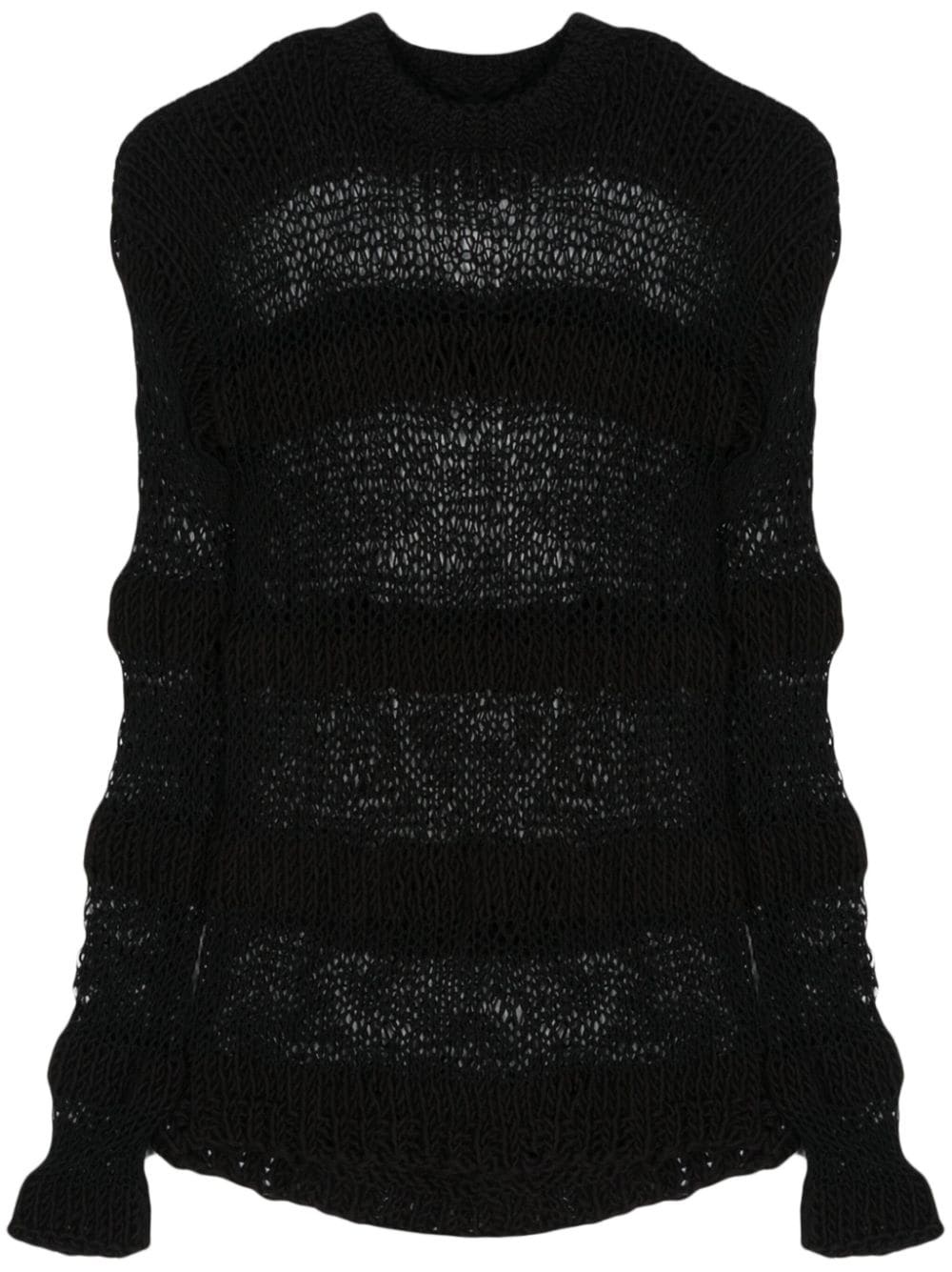 striped open-knit jumper Highlights - Black - Wool blend - Open knit - Horizontal stripe pattern - Crew neck - Long sleeves - Straight hem Made in Italy Composition Wool 83%, Microfibre 17% Washing instructions Dry Clean Only