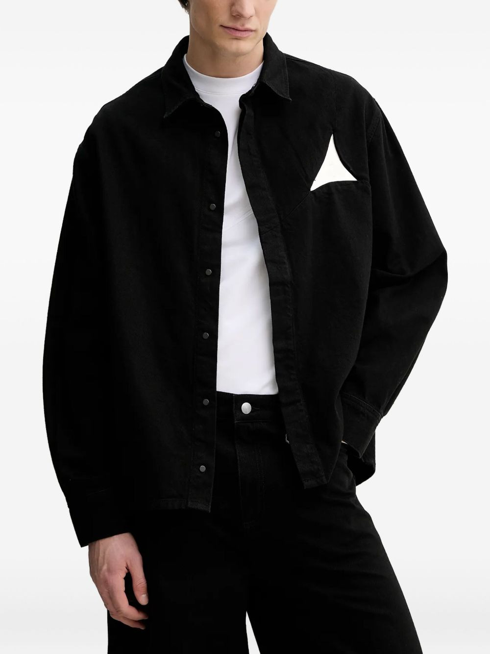 triangle-detail shirt jacket Highlights - Black - Cotton - Triangular detail - Button fastening - Long sleeves Imported Composition Cotton 100% Washing instructions Read Manufacturer Guidelines