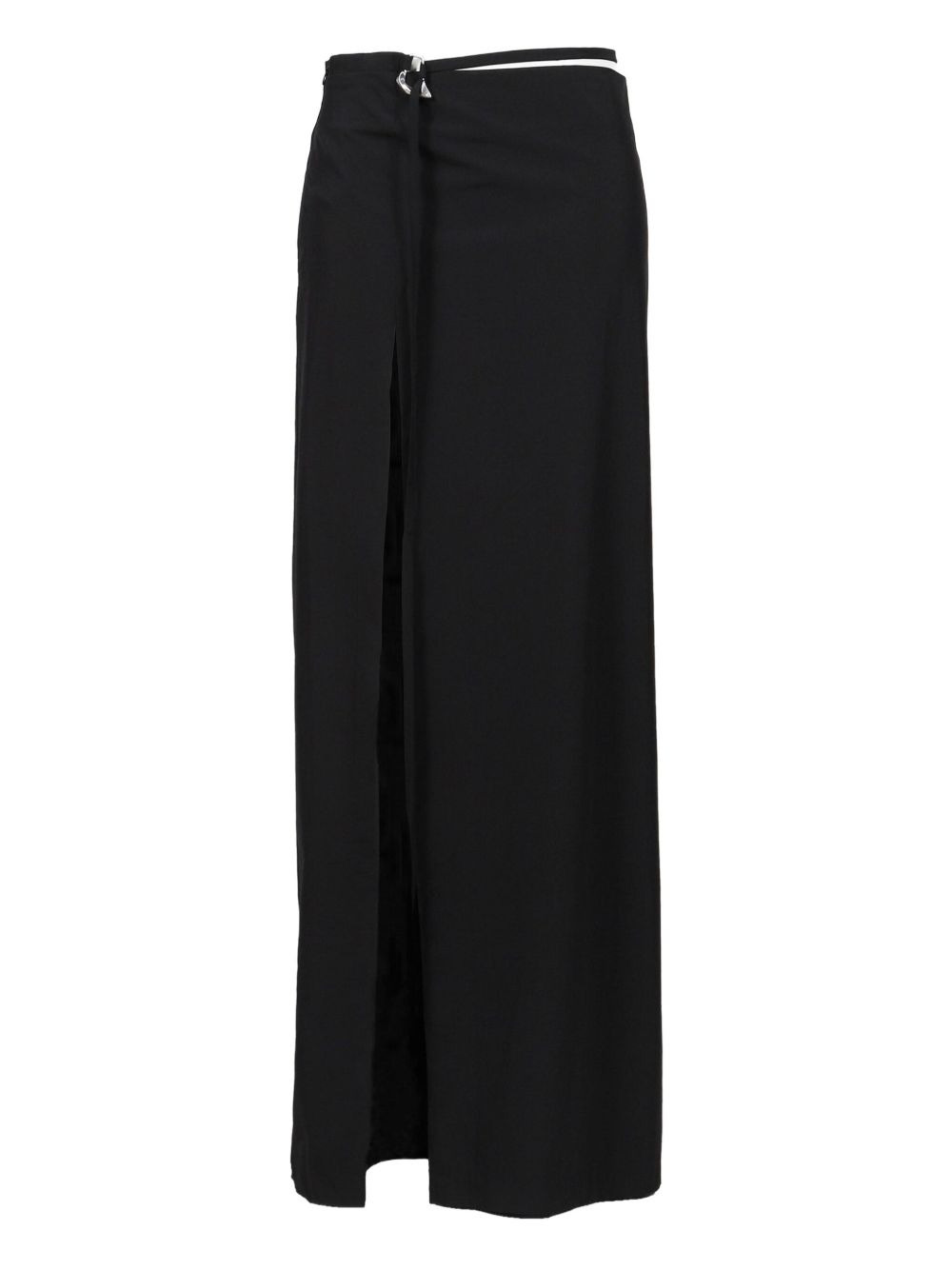wrap-front split skirt Highlights - Black - Wrap-front design - Split detail - High waist - Midi length - Silver-tone clasp Imported Composition Nylon 87%, Elastane 13% Washing instructions Read Manufacturer Guidelines