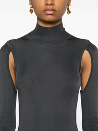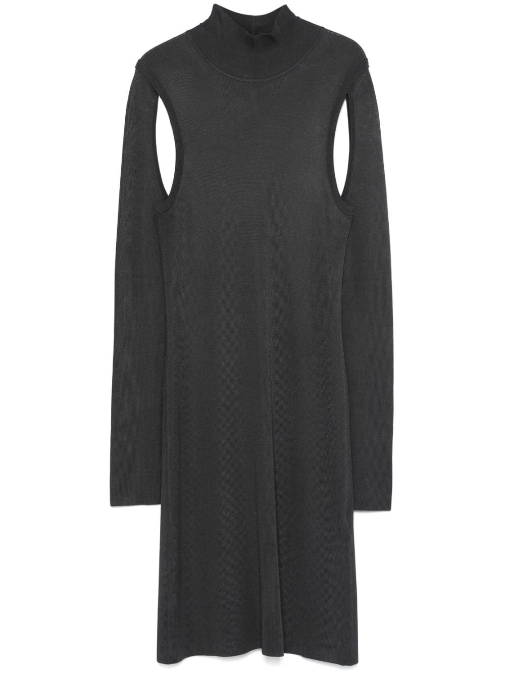 Air midi dress Highlights - Anthracite grey - Ribbed knit - Slip-on style - Roll neck - Long sleeves - Cut-out detailing - Straight hem - Mid-length Imported Composition Viscose 80%, Nylon 18%, Elastane 2% SIZE & FIT Model measurements Height 5 ft 10 in(1.78 m) Bust/Chest 32.67 in(83 cm) Hips 35.43 in(90 cm) Waist 23.22 in(59 cm) FittingInformation Designed for a slim fit that sits just away from the body offering a close yet comfortable fit Made from a midweight stretch fabric, this piece offers elasticity and flexibility when worn