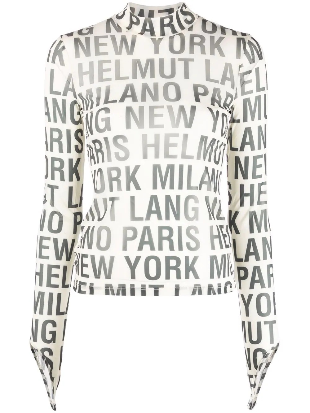 all-over logo print top white stretch-design all-over logo print round neck long sleeves Imported Composition Polyester 84%, Spandex/Elastane 16% SIZE & FIT Model measurements Height 5 ft 10 in(1.78 m) Bust/Chest 33.07 in(84 cm) Hips 35.82 in(91 cm) Waist 25.98 in(66 cm) FittingInformation This piece fits true to size. We recommend you get your regular size Cut for a close fit Made with a lightweight stretch fabric Washing instructions Hand Wash