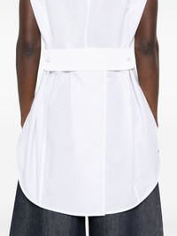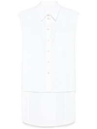 Apex Tail sleeveless shirt Highlights - White - Front button fastening - Chest patch pocket Imported Composition Cotton 100% SIZE & FIT Model measurements Height 5 ft 10 in(1.77 m) Bust/Chest 32.28 in(82 cm) Hips 35.03 in(89 cm) Waist 25.19 in(64 cm) FittingInformation Designed to be unstructured, offering a loose fit throughout Made from a midweight non-stretch fabric