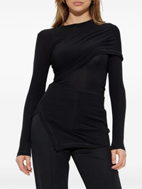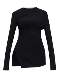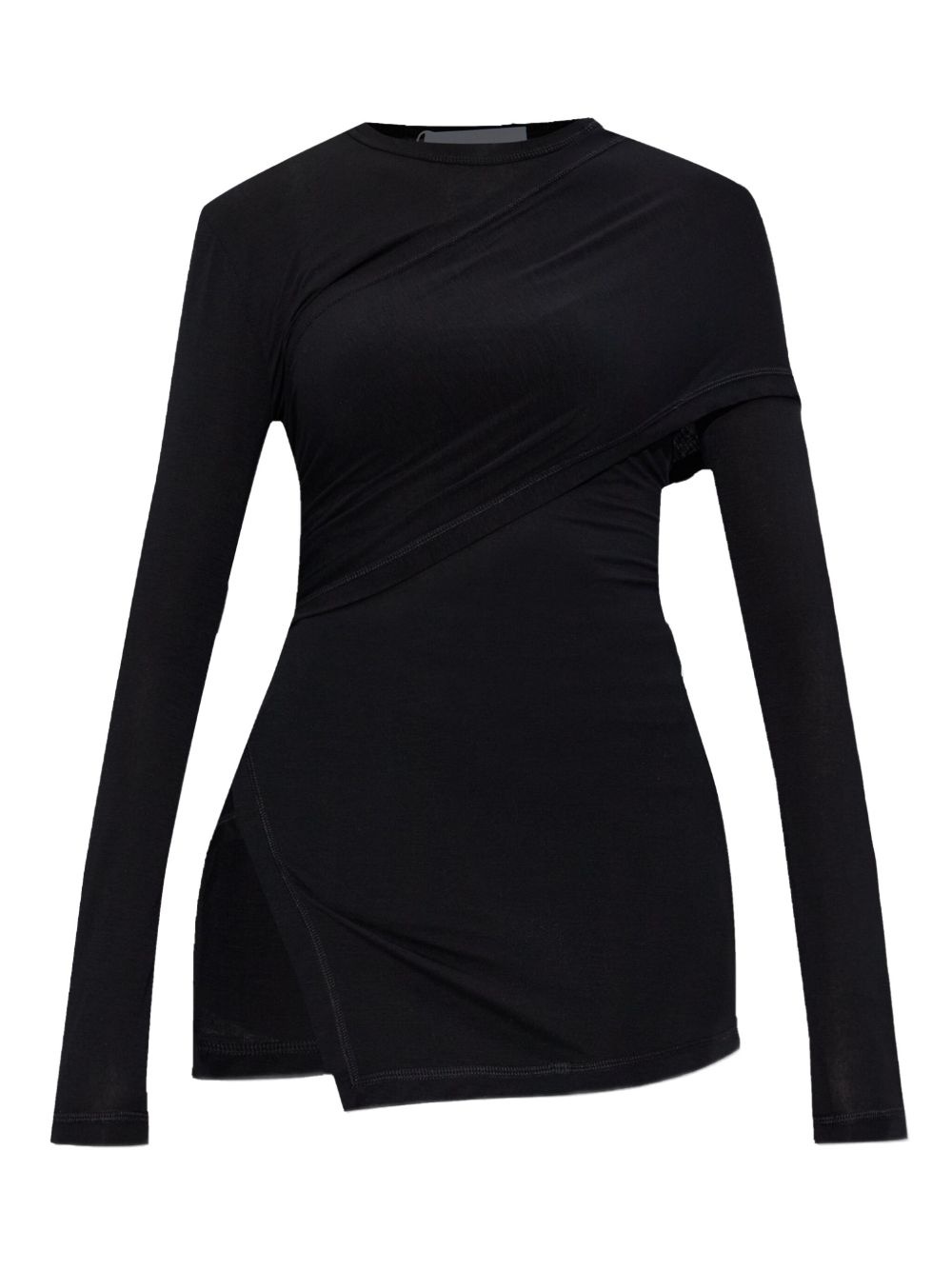 asymmetric blouse Highlights - Black - Draped design - Asymmetrical design - Long sleeves - Layered effect Imported Composition Lyocell 94%, Elastane 6% Washing instructions Read Manufacturer Guidelines