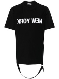 New York T-shirt Highlights - Black - Cotton - Slogan print to the front - Decorative buckle detailing - Crew neck - Short sleeves - Straight hem Imported Composition Cotton 100% SIZE & FIT Model measurements Height 6 ft 2 in(1.88 m) Bust/Chest 34.25 in(87 cm) Hips 34.64 in(88 cm) Waist 26.77 in(68 cm) Measurement CHEST 43.3 in(110 cm) SLEEVE LENGTH 9.44 in(24 cm) LENGTH 27.95 in(71 cm) Shoulder Width 18.5 in(47 cm) FittingInformation Designed for a regular fit allowing for a comfortably loose fit throughout the body Made from a midweight non-stretch fabric, this piece offers minimal elasticity when worn