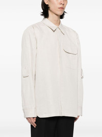 cotton-linen twill shirt Highlights - Beige - Cotton-linen blend - Twill weave - Strap detailing - Epaulettes - Classic collar - Concealed front button fastening - Long sleeves - Buttoned cuffs - Chest flap pocket Imported Composition Cotton 54%, Linen/Flax 46% SIZE & FIT Model measurements Height 6 ft 2 in(1.87 m) Bust/Chest 33.07 in(84 cm) Hips 35.43 in(90 cm) Waist 26.77 in(68 cm) FittingInformation Designed to be unstructured, offering a loose fit throughout Constructed with additional length on the sleeve Made from a midweight non-stretch fabric This piece fits true to size – take your usual size Washing instructions Dry Clean Only