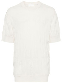 crushed-effect sweater Highlights - Ivory white - Merino wool blend - Intarsia-knit logo - Ribbed detailing - Crew neck - Short sleeves - Straight hem Imported Composition Merino 66%, Polyurethane 24%, Polyester 8%, Polyamide 1%, Elastane 1% SIZE & FIT Model measurements Height 6 ft 2 in(1.87 m) Bust/Chest 33.07 in(84 cm) Hips 35.43 in(90 cm) Waist 26.77 in(68 cm) FittingInformation Designed to be unstructured, offering a loose fit throughout Made with a midweight knit, this piece offers some stretch This piece fits true to size – take your usual size