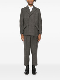 cropped zoot pants Highlights - Cool grey Imported Composition Lining: Viscose 100% Outer: Wool 70%, Polyamide 30% SIZE & FIT Model measurements Height 6 ft 3 in(1.9 m) Bust/Chest 35.03 in(89 cm) Hips 36.61 in(93 cm) Waist 29.13 in(74 cm) FittingInformation Designed for a relaxed tapered leg, allowing a comfortable loose fit above the knee with a closer fit towards the calves Made from a midweight non-stretch fabric