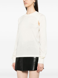 cut-out layered jumper Highlights - White - Wool-silk blend - Cut-out detailing - Crew neck - Drop shoulder - Long sleeves - Ribbed cuffs and hem - Straight hem Imported Composition Wool 67%, Silk 28%, Other fibres 5% SIZE & FIT Model measurements Height 5 ft 11 in(1.8 m) Bust/Chest 31.1 in(79 cm) Hips 36.22 in(92 cm) Waist 25.98 in(66 cm) FittingInformation Designed for a slim fit that sits just away from the body offering a close yet comfortable fit Made with a midweight knit, this piece offers some stretch This piece fits true to size – take your usual size