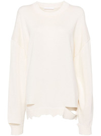 distressed sweater Highlights - Ivory white - Cotton blend - Knitted construction - Distressed finish - Crew neck - Drop shoulder - Long sleeves - Ribbed edge Imported Composition Body: Cotton 99%, Other fibres 1%