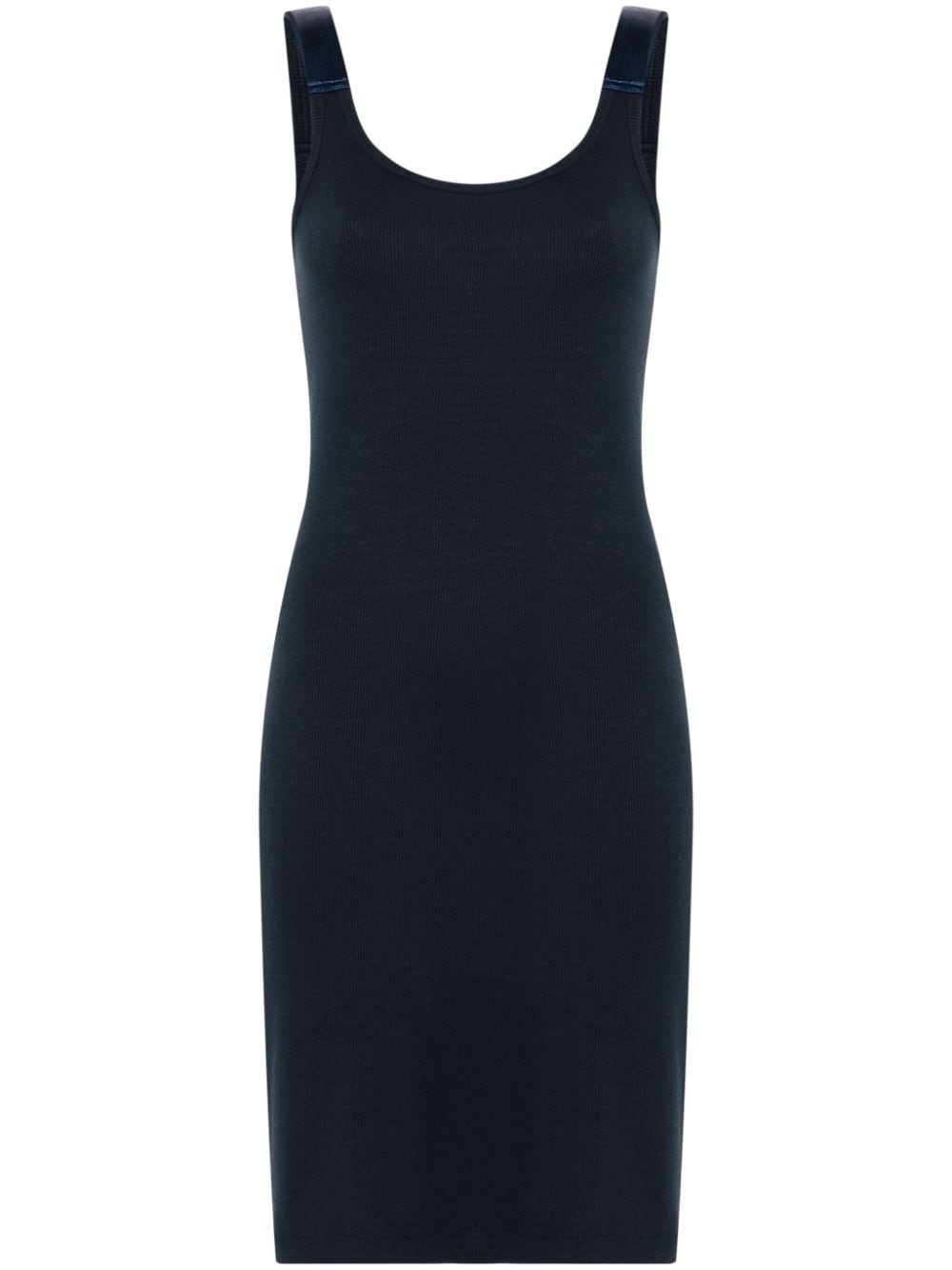 fine-ribbed mini dress Highlights - Navy blue - Modal blend - Fine ribbed - Scoop neck - Sleeveless - Scoop back - Straight hem - Thigh-length Imported Composition Modal 95%, Spandex/Elastane 5% SIZE & FIT Model measurements Height 5 ft 9 in(1.75 m) Bust/Chest 34.64 in(88 cm) Hips 36.61 in(93 cm) Waist 26.37 in(67 cm) FittingInformation Designed for a close fit throughout Made from a midweight stretch fabric, this piece offers elasticity and flexibility when worn
