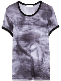 graphic-print T-shirt Highlights - Black - Crew neck - Short sleeves - Semi-sheer construction Imported Composition Cotton 100%, Polyamide 100% SIZE & FIT Model measurements Height 5 ft 11 in(1.8 m) Bust/Chest 31.49 in(80 cm) Hips 36.61 in(93 cm) Waist 24.4 in(62 cm) FittingInformation Designed for a slim fit that sits just away from the body offering a close yet comfortable fit Made from a midweight non-stretch fabric, this piece offers minimal elasticity when worn