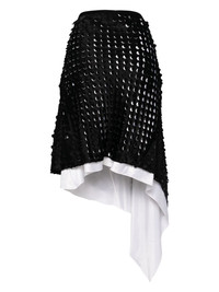 hole-punched scarf hem skirt Highlights - Black/white - Satin weave - Elasticated waistband - Punched holes - Laser-cut detail - Double layer - Concealed side zip fastening - All-over logo embroidery - Asymmetric hem Imported Composition Outer: Viscose 82%, Rayon 18% Lining: Viscose 100%