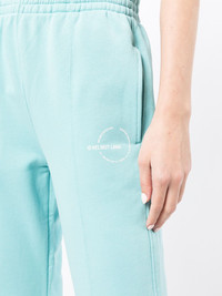 logo-embroidered cotton track pants aqua blue cotton jersey fleece straight leg embroidered logo to the front elasticated waistband two side slash pockets rear patch pocket elasticated ankles Imported Composition Cotton 100% SIZE & FIT Model measurements Height 5 ft 9 in(1.76 m) Bust/Chest 29.13 in(74 cm) Hips 33.07 in(84 cm) Waist 22.83 in(58 cm) FittingInformation This piece fits true to size. We recommend you get your regular size Designed to be loose over the leg with a fitted waist and hem Made with a mid-weight fabric Washing instructions Machine Wash
