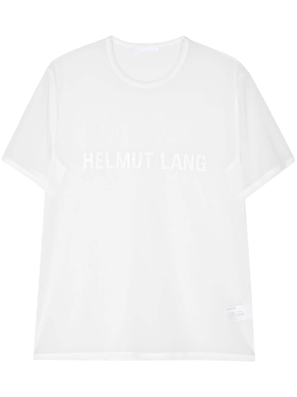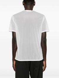 logo-print sheer T-shirt Highlights - White - Semi-sheer construction - Crew neck - Short sleeves - Logo print to the front - Straight hem - When buying this unisex item, keep in mind that it is graded in standard men's sizing. Imported Composition Polyester 100%, Polyurethane 100% SIZE & FIT Model measurements Height 5 ft 10 in(1.78 m) Bust/Chest 31.49 in(80 cm) Hips 37 in(94 cm) Waist 23.62 in(60 cm) FittingInformation This unisex piece is designed for a loose fit whether you usually select women's or men's sizes Made from a lightweight non-stretch fabric, this piece offers minimal elasticity when worn