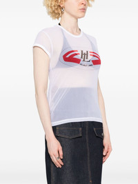 logo-print T-shirt Highlights - White - Ribbed cuffs - Cap sleeves - Crew neck Imported Composition Polyamide 100%, Cotton 100% SIZE & FIT Model measurements Height 5 ft 9 in(1.75 m) Bust/Chest 34.64 in(88 cm) Hips 36.61 in(93 cm) Waist 26.37 in(67 cm) FittingInformation Designed for a relaxed fit, this piece allows for comfort and movement when worn Made from a lightweight non-stretch fabric, this piece offers minimal elasticity when worn