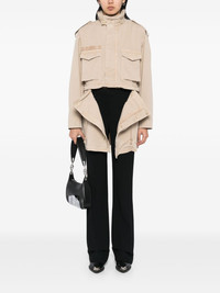 military coat Highlights - Sand beige - Front button fastening - Concealed hood - Detachable panels - Buttoned cuffs Imported Composition Cotton 96%, Elastane 4% SIZE & FIT Model measurements Height 5 ft 10 in(1.77 m) Bust/Chest 31.49 in(80 cm) Hips 35.43 in(90 cm) Waist 25.19 in(64 cm)