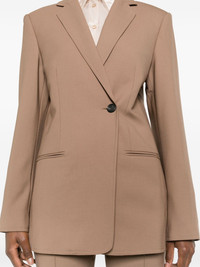notched-lapels tailored blazer Highlights - Dune brown - Tailored design - Notched lapels - Long sleeves - Two front welt pockets - Central rear vent - Internal jetted pocket - Full lining - Tonal stitching - Single-double breasted button fastening Imported Composition Outer: Polyester 53%, Virgin Wool 43%, Elastane 4% Lining: Polyester 100% SIZE & FIT Model measurements Height 5 ft 11 in(1.8 m) Bust/Chest 31.49 in(80 cm) Hips 36.61 in(93 cm) Waist 24.4 in(62 cm) FittingInformation Designed for a slim fit that sits just away from the body offering a close yet comfortable fit The internal shoulder pads offer a structured shape Made from a midweight fabric This piece fits true to size – take your usual size Washing instructions Dry Clean Only