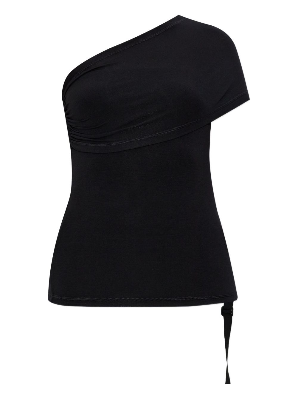 one-shoulder top Highlights - Black - One-shoulder design - Gathered detailing - Single sleeve - Strap detailing Imported Composition Lyocell 94%, Elastane 6% Washing instructions Machine Wash
