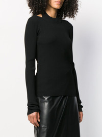open back jumper Acclaimed as one of the most influential designers in fashion, Helmut Lang continues to seduce the fashion world with understated sophistication and minimalist designs such as this black open back jumper. Featuring a crew neck, long sleeves, a ribbed design, a fitted silhouette and a straight hem. Imported Composition Viscose 65%, Nylon 35% SIZE & FIT Model measurements Height 5 ft 10 in(1.78 m) Bust/Chest 33.07 in(84 cm) Hips 36.61 in(93 cm) Waist 24.8 in(63 cm) Washing instructions Dry Clean Only
