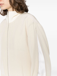 panelled reversible bomber jacket Highlights - White/beige - Silk - Panelled design - Reversible - High neck - Front zip fastening - Long sleeves - Two front flap pockets - Straight hem - Ribbed cuffs and hem Imported Composition Lining: Viscose 100% Outer: Silk 100% SIZE & FIT Model measurements Height 5 ft 10 in(1.78 m) Bust/Chest 32.67 in(83 cm) Hips 37 in(94 cm) Waist 25.59 in(65 cm) FittingInformation Designed for a relaxed fit, this piece allows for comfort and movement when worn The ribbed hem offers a close, comfortable fit Made from a midweight non-stretch fabric This piece fits true to size – take your usual size