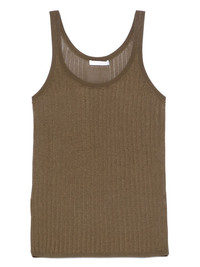 pointelle ribbed tank top Highlights - Olive green - Scoop neck - Sleeveless - Ribbed trim Imported Composition Viscose 88%, Nylon 12% SIZE & FIT Model measurements Height 5 ft 9 in(1.75 m) Bust/Chest 34.64 in(88 cm) Hips 36.61 in(93 cm) Waist 26.37 in(67 cm) FittingInformation Designed for a slim fit that sits just away from the body offering a close yet comfortable fit Made from a midweight non-stretch fabric, this piece offers minimal elasticity when worn