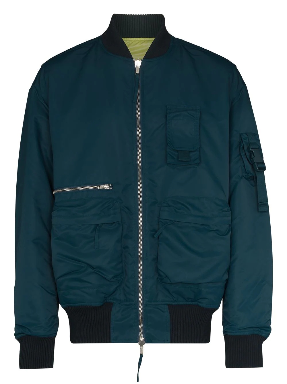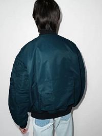 reversible zip-up bomber jacket Embodying Helmut Lang’s functional design style, this bomber jacket boasts a reversible design with soft quilting. To add to the utilitarian look, the piece is designed with multiple pockets. Imported Composition Lining: Polyester 100% Outer: Nylon 100%, Cotton 100% SIZE & FIT Model measurements Height 6 ft 2 in(1.88 m) Bust/Chest 37.4 in(95 cm) Hips 37.79 in(96 cm) Waist 30.31 in(77 cm) Measurement BUST 60.62 in(154 cm) FittingInformation This piece fits true to size. We recommend you get your regular size Cut for a loose fit Made with a mid-weight fabric