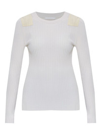ribbed long-sleeve top Highlights - White - Crew neck - Long sleeves - Ribbed construction - Straight hem Imported Composition Wool 82%, Polyamide 15%, Spandex/Elastane 3%