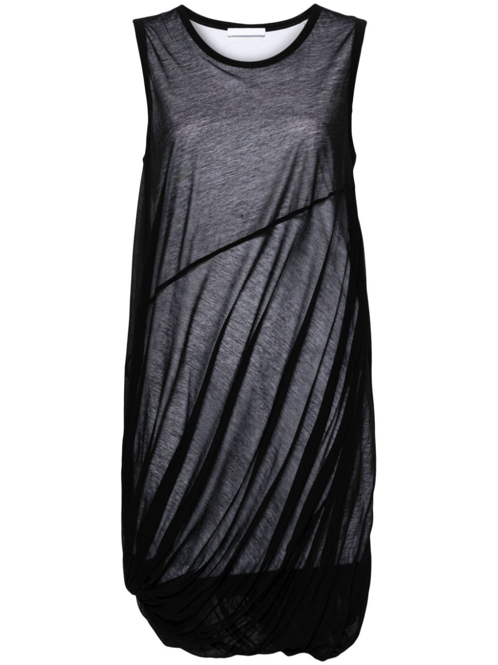 Bubble sheer-overlay dress Highlights - Black - Cotton - Jersey texture - Sheer overlay - Round neck - Sleeveless - Puffball hem - Above-knee length Imported Composition Cotton 100% SIZE & FIT Model measurements Height 5 ft 9 in(1.76 m) Bust/Chest 29.13 in(74 cm) Hips 33.07 in(84 cm) Waist 22.83 in(58 cm) FittingInformation Designed for a loose fit at the chest and waist with a close fit at the hips Made from a midweight non-stretch fabric, this piece offers minimal elasticity when worn This piece fits true to size – take your usual size