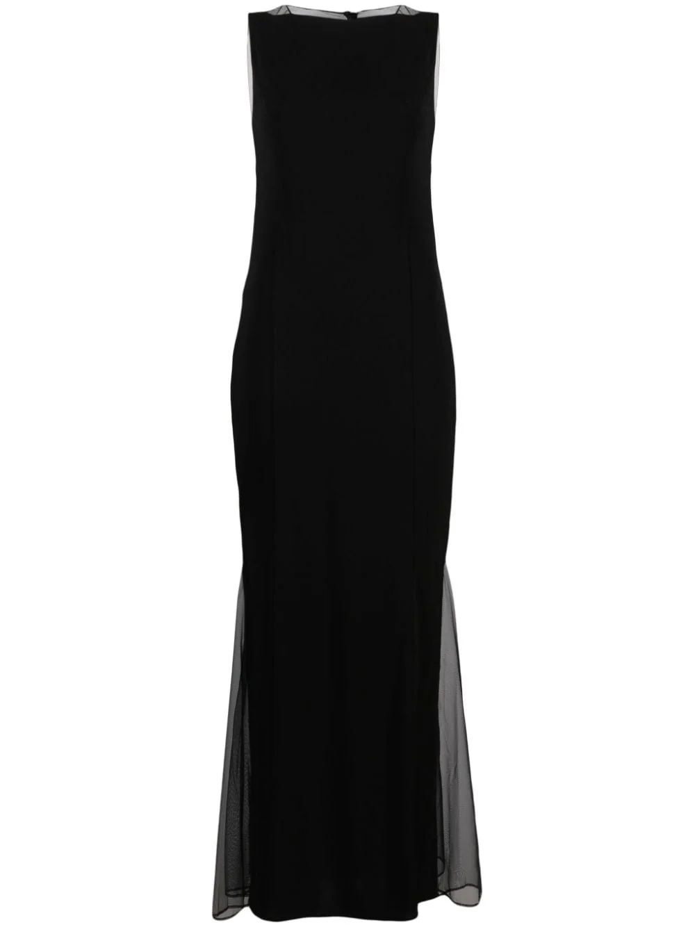 sheer-panelled flared dress Highlights - Black - Crepe texture - Semi-sheer panels - Square neck - Sleeveless - Rear zip fastening - Draped back - Column silhouette - Flared hem Imported Composition Outer: Viscose 100%, Polyester 100% Lining: Polyester 85%, Spandex/Elastane 15% Washing instructions Specialist Cleaning