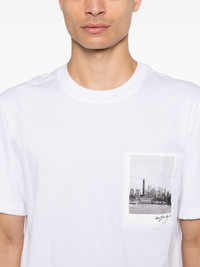 Skyline Postcard T-shirt Highlights - White - Cotton - Lightweight jersey - Photograph print - Crew neck - Chest patch pocket - Short sleeves - Logo print to the rear - Straight hem Imported Composition Cotton 100% SIZE & FIT Model measurements Height 6 ft 1 in(1.85 m) Bust/Chest 35.82 in(91 cm) Hips 37.79 in(96 cm) Waist 29.13 in(74 cm) Measurement CHEST 44.88 in(114 cm) SLEEVE LENGTH 9.84 in(25 cm) LENGTH 28.34 in(72 cm) Shoulder Width 18.89 in(48 cm) FittingInformation Designed for a relaxed fit, this piece allows for comfort and movement when worn Made from a midweight non-stretch fabric, this piece offers minimal elasticity when worn