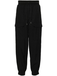 tapered cargo trousers Highlights - Black - Cotton blend - Elasticated drawstring waistband - Two diagonal pockets to the sides - Two side cargo pockets - Two rear patch pockets - Elasticated cuffs - Tapered leg Imported Composition Outer: Cotton 75%, Nylon 25% Lining: Cotton 100%, Polyester 100% SIZE & FIT Model measurements Height 5 ft 10 in(1.77 m) Bust/Chest 31.88 in(81 cm) Hips 36.22 in(92 cm) Waist 24.01 in(61 cm) FittingInformation Designed for a relaxed tapered cut, these trousers allow for a close fit at the waist and offer a loose fit at the thighs, with a closer fit toward the ankles The elasticated waist and hem offer a secure, comfortable fit Made from a midweight non-stretch fabric