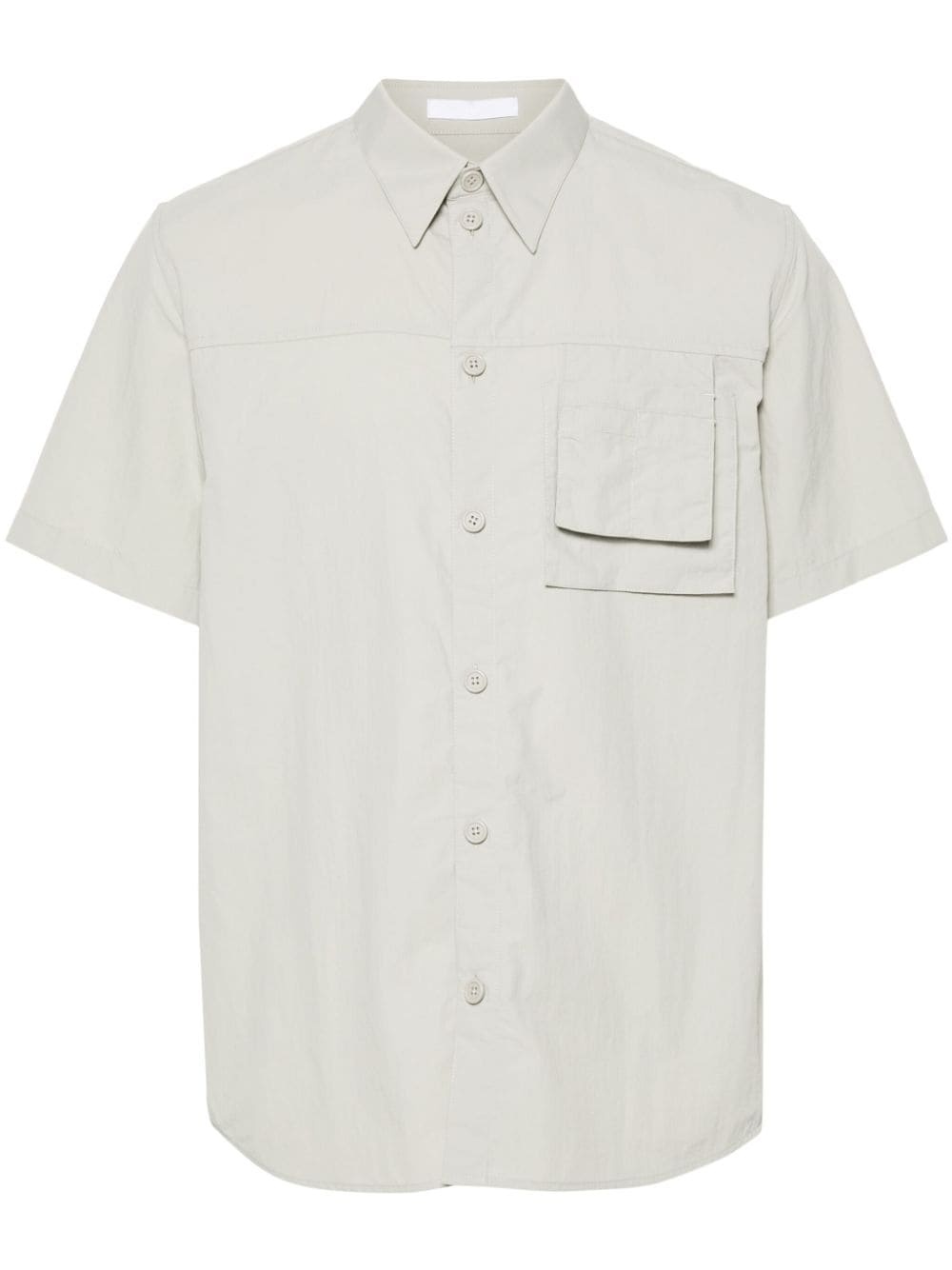 utility-pocket shirt Highlights - Light grey - Pointed flat collar - Short sleeves - Chest patch pocket - Slit pockets at the chest - Curved hem - Front button fastening Imported Composition Nylon 100% SIZE & FIT Model measurements Height 6 ft 1 in(1.86 m) Bust/Chest 36.61 in(93 cm) Hips 37 in(94 cm) Waist 28.74 in(73 cm) FittingInformation Designed for a regular fit, allowing for a comfortably loose fit throughout the body Made from a midweight non-stretch fabric This piece fits true to size – take your usual size