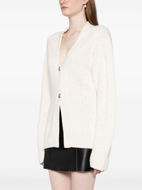 V-neck tailored cardigan Highlights - Ivory white - Wool-cashmere blend - V-neck - Front button fastening - Drop shoulder - Long sleeves - Ribbed cuffs and hem Imported Composition Body: Wool 40%, Polyamide 25%, Viscose 25%, Cashmere 10% SIZE & FIT Model measurements Height 5 ft 9 in(1.75 m) Bust/Chest 31.88 in(81 cm) Hips 35.03 in(89 cm) Waist 23.22 in(59 cm) FittingInformation Designed for a slim fit that sits just away from the body offering a close yet comfortable fit Made with a midweight knit, this piece offers some stretch This piece fits true to size – take your usual size Measurement SLEEVE LENGTH 23.22 in(59 cm) LENGTH 27.16 in(69 cm) WAIST 35.43 in(90 cm) BUST 34.64 in(88 cm) Washing instructions Dry Clean Only