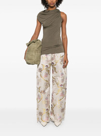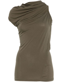 Wind top Highlights - Olive green - Asymmetric sleeves - Draped design Imported Composition Lyocell 94%, Elastane 6% SIZE & FIT Model measurements Height 5 ft 11 in(1.8 m) Bust/Chest 31.49 in(80 cm) Hips 35.82 in(91 cm) Waist 24.8 in(63 cm) FittingInformation Designed for a slim fit that sits just away from the body offering a close yet comfortable fit Made from a midweight stretch fabric, this piece offers elasticity and flexibility when worn