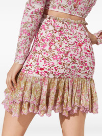 Hera floral-print mini skirt Highlights - Pink - Floral print - Ruffled hem - Mini length Imported Composition Viscose 100%, Lurex 100% Washing instructions Read Manufacturer Guidelines