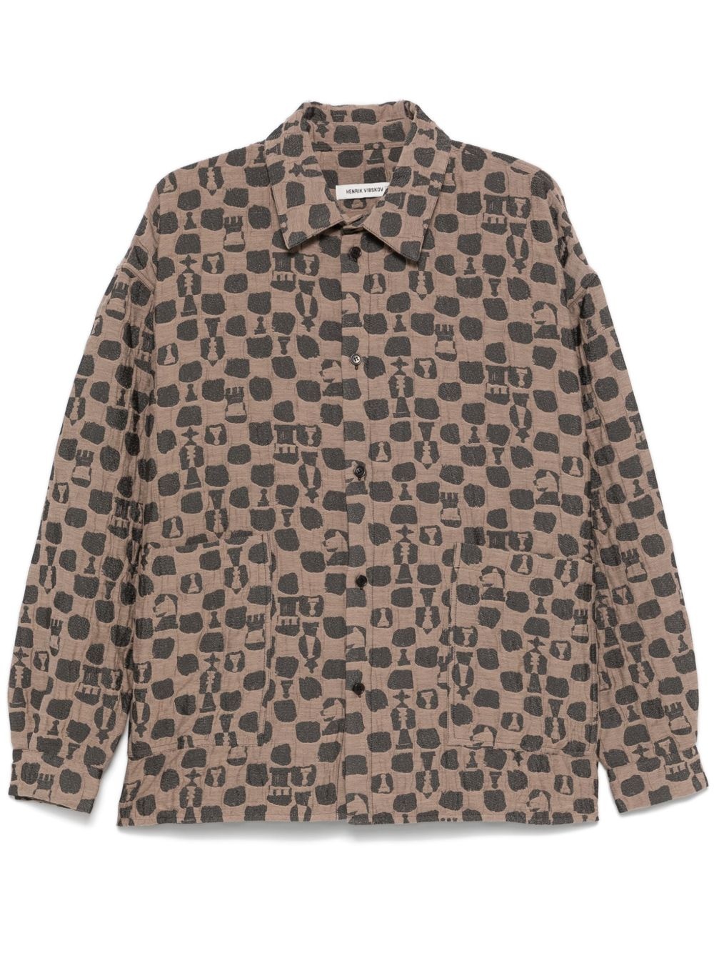 Big shirt Highlights - Sand brown - Crinkled finish - Patterned jacquard - Front button fastening - Classic collar - Drop shoulder - Long sleeves - Buttoned cuffs - Two front patch pockets - Side slits - Box-pleat detail - Curved hem Imported Composition Viscose 48%, Cotton 24%, Polyester 23%, Polyacrylic 5% SIZE & FIT Model measurements Height 6 ft 1 in(1.85 m) Bust/Chest 35.82 in(91 cm) Hips 37.79 in(96 cm) Waist 29.13 in(74 cm) FittingInformation Designed for a boxy fit, intended for a loose fit throughout Made from a midweight non-stretch fabric Washing instructions Dry Clean Only