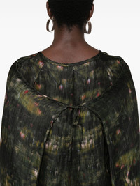 Bind midi dress Highlights - Black/jade green/multicolour - Linen-silk blend - Abstract pattern print - Rounded collar - Long raglan sleeves - Rear strap detailing - Box-pleat detail to the rear - Unlined - Below-knee length Imported Composition Linen/Flax 55%, Silk 45% SIZE & FIT Model measurements Height 5 ft 10 in(1.77 m) Bust/Chest 32.28 in(82 cm) Hips 35.03 in(89 cm) Waist 25.19 in(64 cm) FittingInformation Designed to be unstructured, offering a loose fit throughout The adjustable drawstring means that you can adjust this piece’s fit to suit your comfort and preference Made from a lightweight non-stretch fabric This piece fits true to size – take your usual size