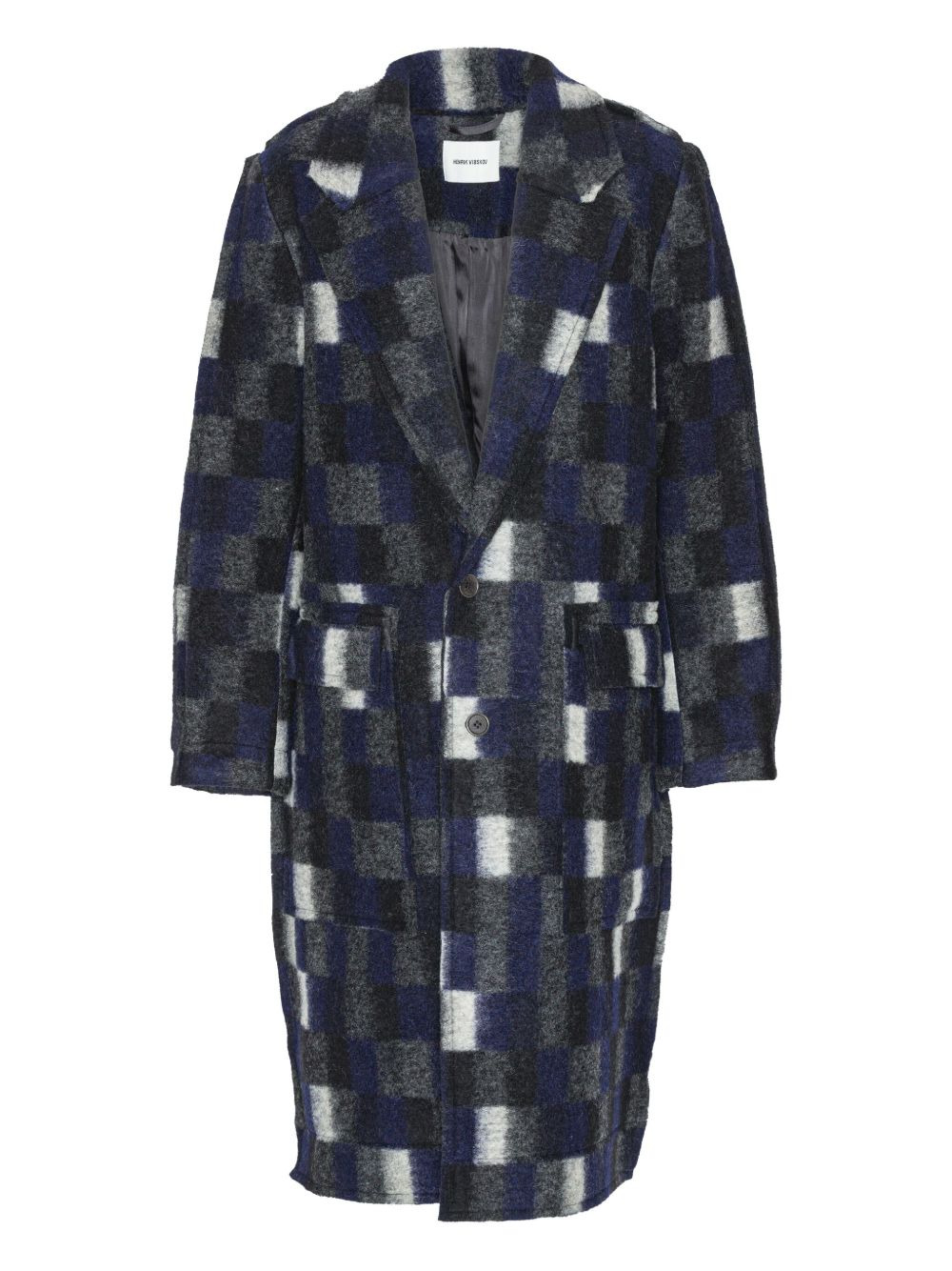 brushed-finish coat Highlights - Blue - Brushed finish - Squares pattern - Front button fastening - Front pockets - Notched lapels Imported Composition Wool 100% Washing instructions Read Manufacturer Guidelines